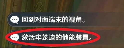 分别是“试试牢笼边的终端”、“激活门边的储能装置”、“激活牢笼边的储能装置”