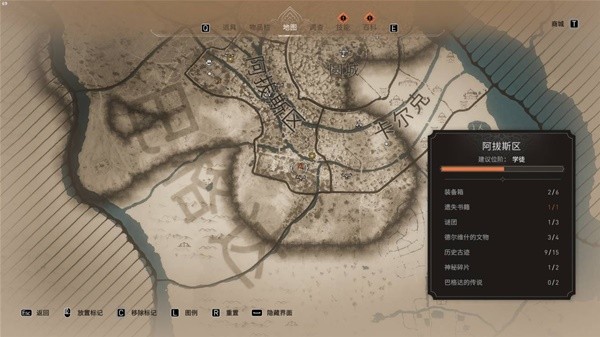 藏宝图(完成猴就看不到了)所示线索为城墙、穿墙而过的河流、蓝色圆顶,城墙另一边是荒漠