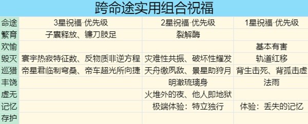 (其他祝福可优先选择巡猎、毁灭,补充输出)