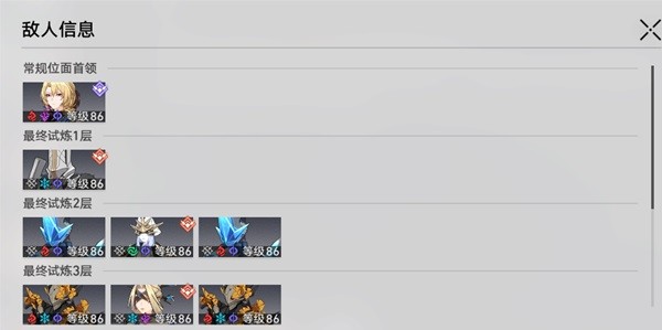 ▶「最终试炼」为多层连续战斗,每1波次战斗记作1层,设有6轮次倒计时,随层数提升,敌人将不断增强;