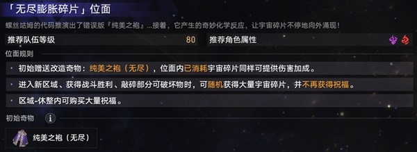 「无尽位面」活动可继承模拟宇宙技能树养成结果(开拓祝福除外)。