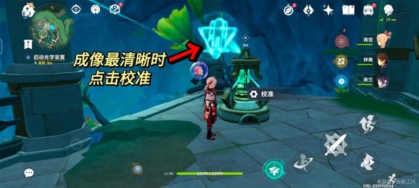 启动后依旧需要我们在成像最清晰的时候点击“校准”,完成聚光。需要注意的是如果“校准”键没有出现就稍微让角色挪动几步,因为校准需要差不多在成像的对面。