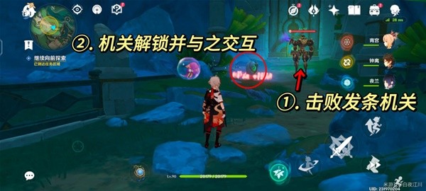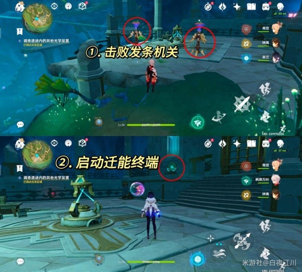 首先击败面前的两只发条机关,解锁并启动旁边的迁能终端。