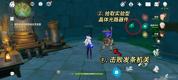 进入面前的房间,左拐击败发条机关,然后拾取墙边的“实验型晶体光路器件”。