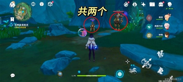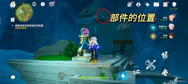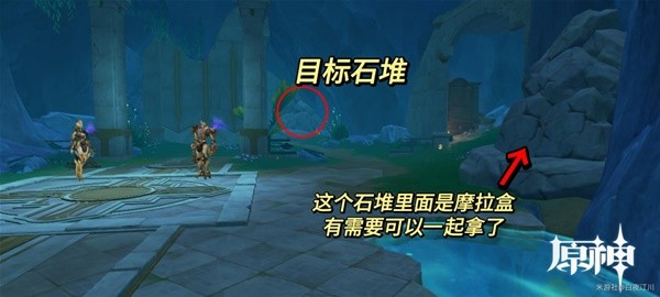 在这个房间里共有两个碎石堆。迁移式储能装置就在最靠里面的碎石堆中,而另一个里面则是摩拉盒。如果大家找不到碎石堆可以打开元素视野,一眼就能看到。