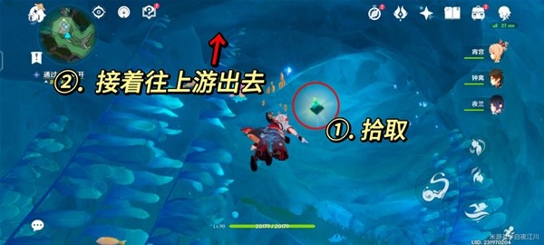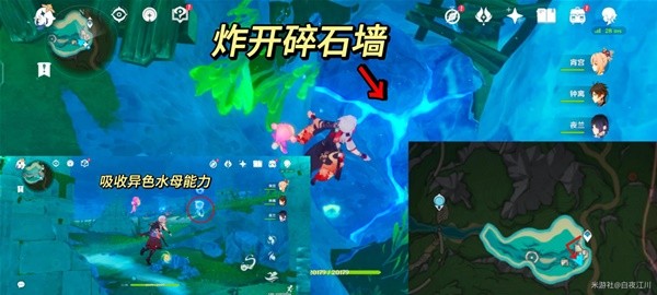 传送到枫丹动能工程科学研究院区最东边的锚点,潜入旁边的水下。来到图示位置,吸收附近的异色水母能力,炸开碎石墙。