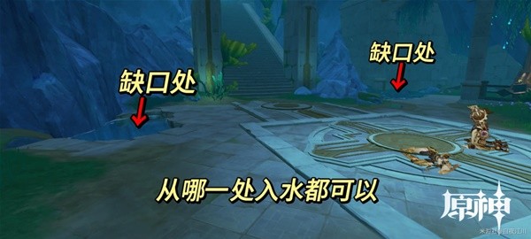 房间里有两处缺口可以下潜进入水中,选择哪一个都一样。
