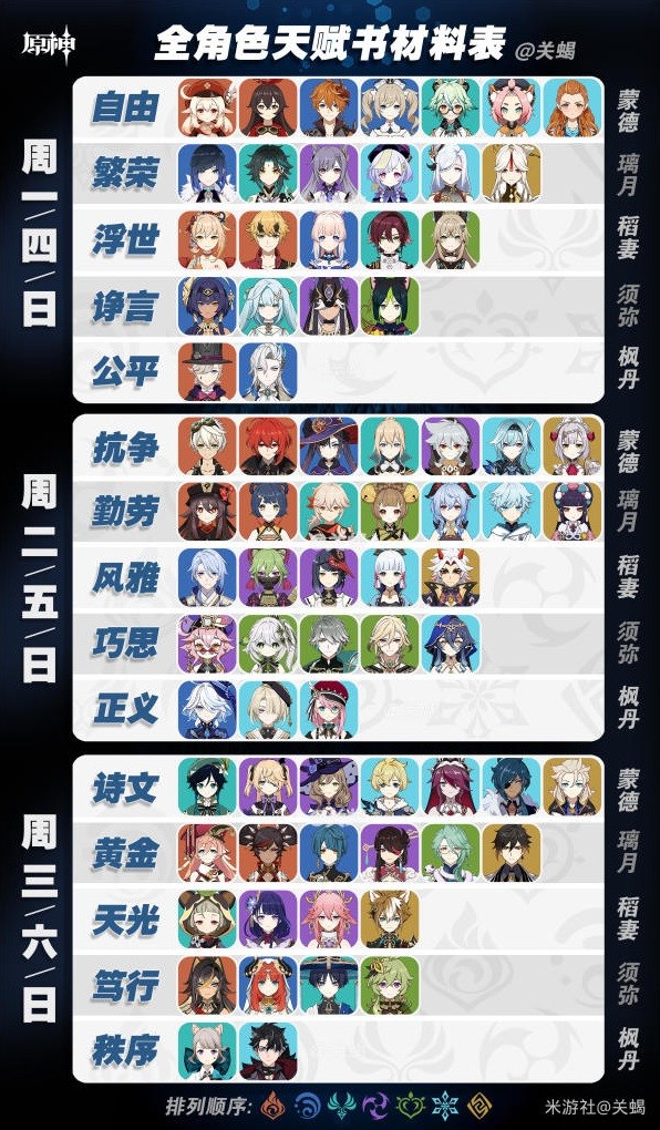 《原神》4.2版本已经更新,4.2枫丹角色需要天赋书、材料来进行升级,那么《原神》4.2枫丹角色天赋书需要哪些?4.2枫丹周本材料有哪些?看下由玩家“关蝎”带来的《原神》4.2天赋书/周本/五星武器材料表合集吧。