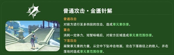 施放元素爆发会生成一个时间较短、血量较低且对草元素伤害有250%吸收效果的无郤气护盾,并且在元素爆发持续时间内每2.5秒都会产生新的护盾。这个护盾在破碎时、当前无郤气护盾存在时因2.5秒而生成新的护盾时会治疗场上自己的角色,并释放灵气脉对单个敌人造成草元素伤害。需要注意的一点是这两点情况需要理清楚,若是护盾因伤害破碎后提供了治疗和灵气脉攻击,下一次生成无郤气护盾时并不会再次对角色治疗和释放灵气脉,以此类推。