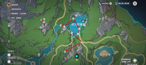 (湖中的「湖光铃兰」需要完成世界任务「伊黎耶的野精灵」才可采集,共有八个)