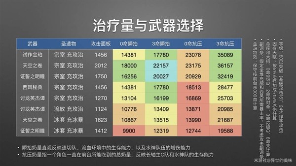 这里金珀较为保守,在前台1.8W血量时理论总奶量已经接近厕纸,而厕纸此时的瞬抬奶已经超过前台的血量上限,多出的只能算是无效奶量。去掉溢出量后,有效奶量无疑金珀更高。