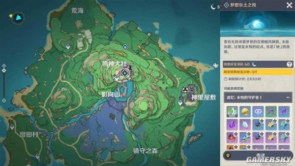 周本「梦想乐土之殁」位于 稻妻 鸣神大社,位置如下: