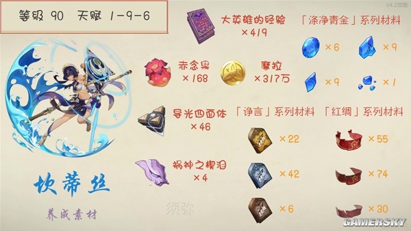 《原神》中的坎蒂丝需要须弥特产赤念果作为突破材料进行培养。下面就为大家带来由“沙雕亿只”分享的《原神》4.2坎蒂丝角色满级养成材料汇总,希望对大家有用。