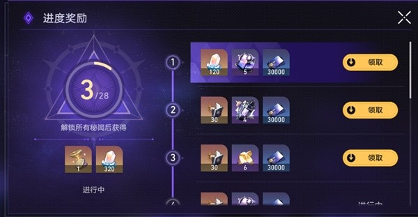 秘闻解锁进度奖励