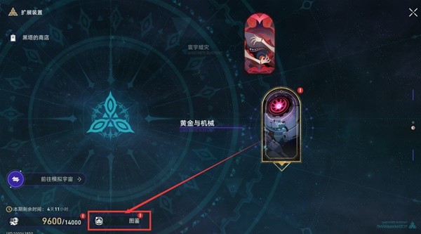 黄金与机械的入口位于空间站「黑塔」-主控舱段-黑塔的办公室,在模拟宇宙界面中各个世界入口的左下角位置。