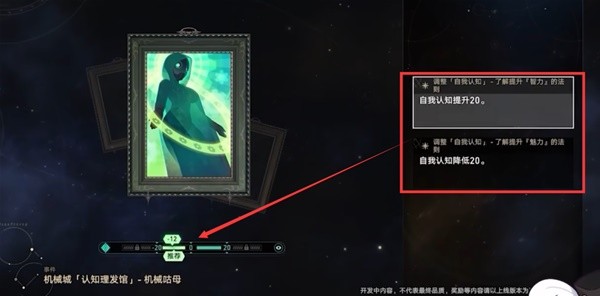 在位面一和位面二,每次进入自我认知节点我们可以调整20点自我认知值,在位面三,我们可以调整40点。