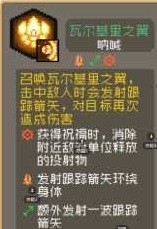 最后一个其实可以随便选,我选的是瓦尔基里呐喊。主要看上了它消除敌方投射物的效果。在某些BOSS例如哥布林巫师关有奇效。跟踪箭矢也属于普通攻击,可以叠战意。