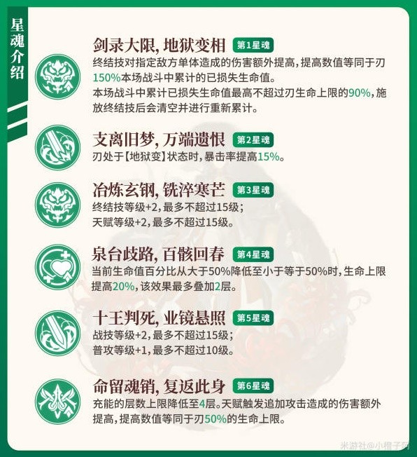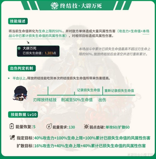 ②扣刃生命上限20%的生命值,可叠加1层天赋充能,并且记录损失生命值,加快追加攻击的释放的同时,还能使终结技打出更高伤害。