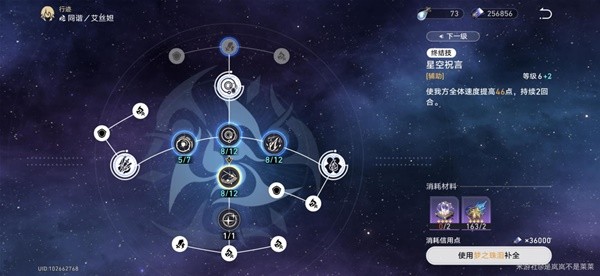 终结技10/11/12级的全体提速50/51/52,10级点满了会很适合佩戴格拉默两件套的主C或有像希儿、托帕等带有追加攻击的C(不适合克拉拉这种走反击流的C)