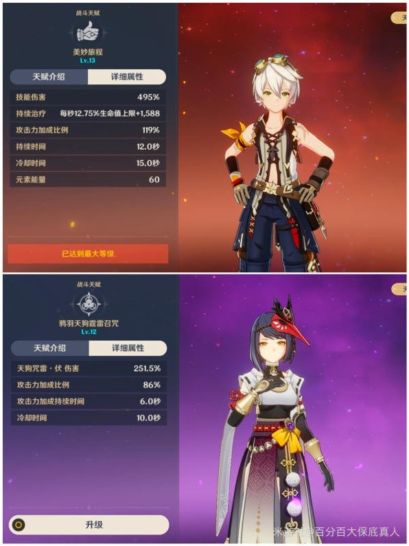 此条件下,雷伤杯伤害250300,攻击杯伤害239429。