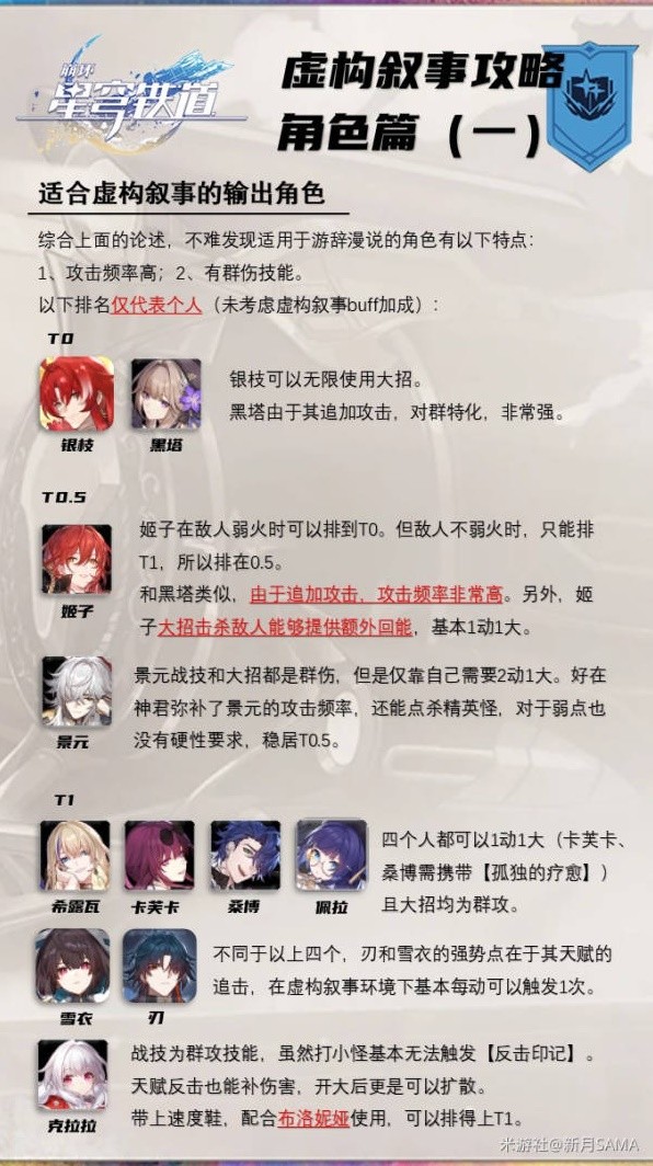 以下为个人根据虚构叙事的机制,以及以往对各个角色的理解排出的榜单。