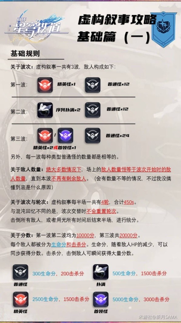 虚构叙事每个半场共有3波敌人,时间限制为4轮(450S)。