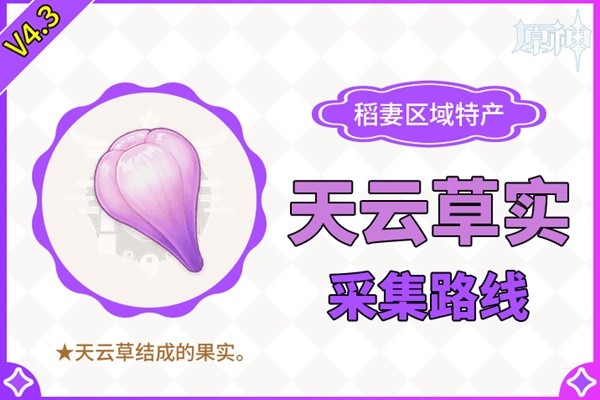 《原神》4.3版本下半复刻了五星的雷电将军,而天云草实是其重要的突破材料,可以在稻妻地图上收集到。下面请看由“君堓”带来的《原神》4.3版本天云草实采集路线分享,希望对大家有用。