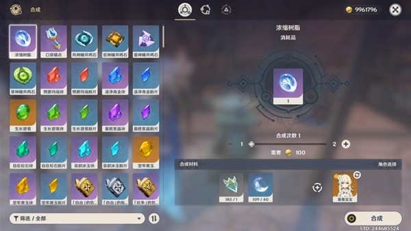 【获取方式】在合成台,40原淬树脂+1晶蝶=1浓缩树脂。