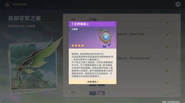三、须弥声望:3级王树瑞佑(一键砍树);