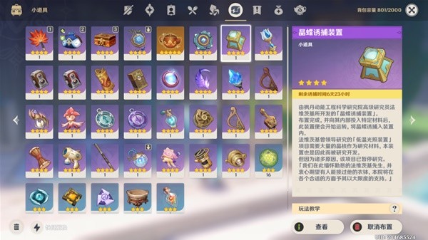 【使用方式】在背包找到晶蝶诱捕装置→找个熟悉的地方部署→选择30个矿→启动→等待一周后→获取15晶蝶。