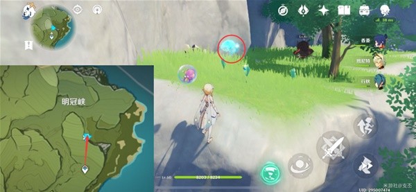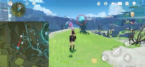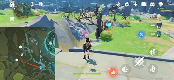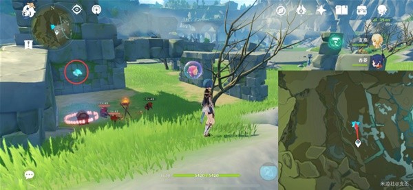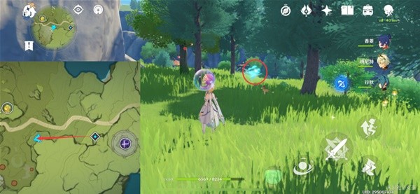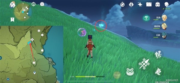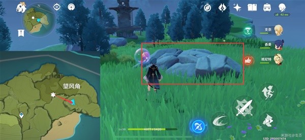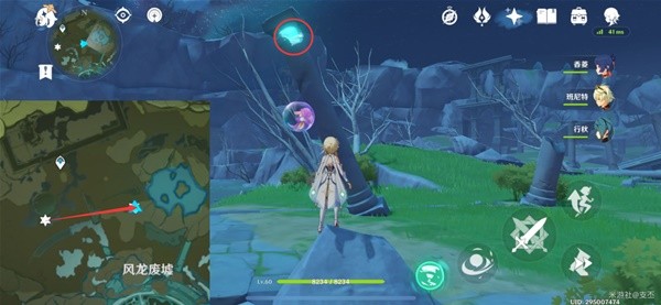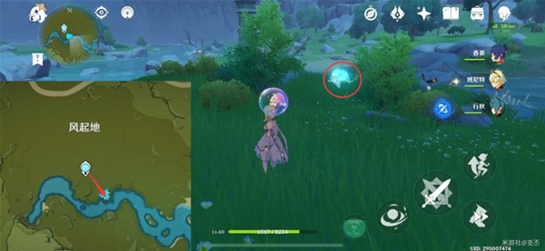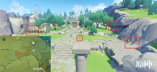 仙灵在灌木丛旁,跟随仙灵归位,然后穿过风圈,获得精致宝箱(2原石)