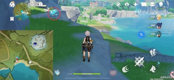 仙灵在宝箱左边湖面平台上,一路跟随、归位