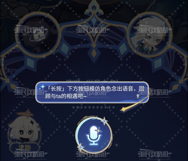 进入活动界面后,点击下方的麦克风标志读出角色台词即可解锁角色图鉴,如果不方便读,也可以点击左下角的【求助】让派蒙来读。解锁任意5名角色即可获得原石。