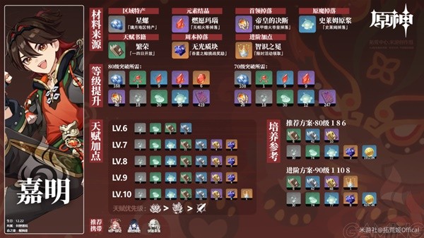 *培养参考中的原魔掉落物为等级突破+天赋升级所需总和,仅供参考
