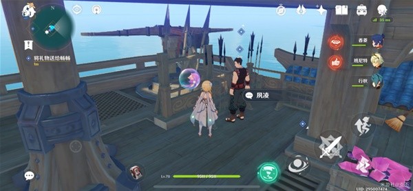 传送到璃月港,来到码头街道上,将小月的礼物送给畅畅,对话得知,这两小孩的友情非同一般