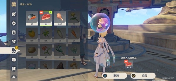 小月的需求是星螺,将三份星螺交付给小月,然后他用星螺制作成礼物,需要送给璃月港的畅畅