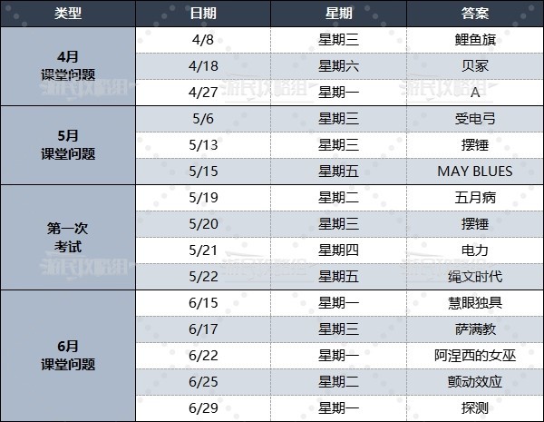 《女神异闻录3Reload(P3RE)》中上课需要回答课堂问题,除此之外还需要参加考试,正确回答问题可以提升个人能力值,下面就为大家带来《女神异闻录3Reload(P3RE)》全课堂问题及考试答案,希望对大家有所帮助。