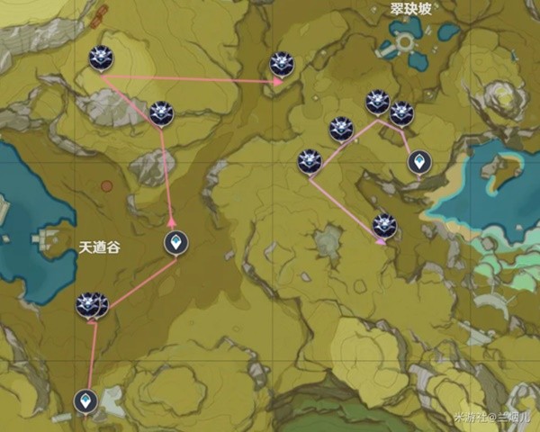 丘丘萨满目前广泛分布在提瓦特区域,其中优秀点位有风龙废墟、鹤观和渊下宫,我的路线只是一部分,更多的仅供参考