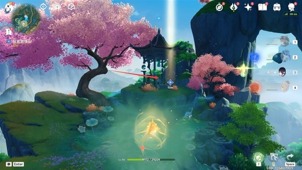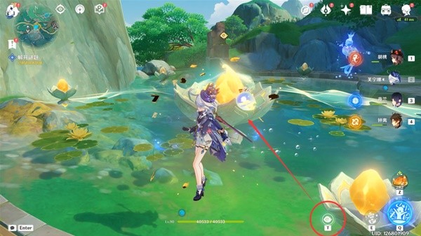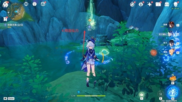 靠近中间莲花,获取能力,接着角色周围会出现一个范围光环,站在水潭中间合适的位置。