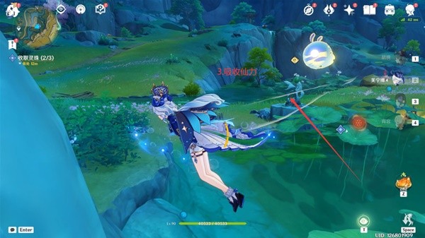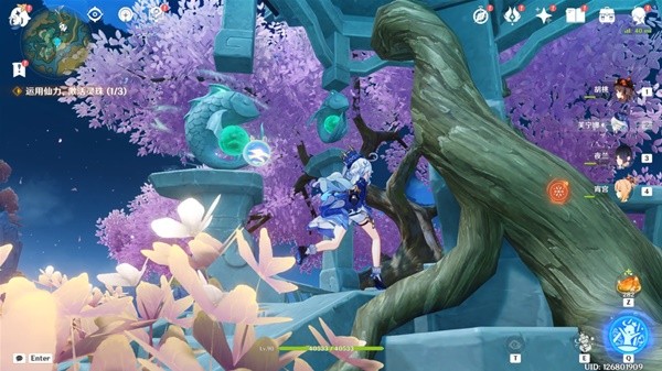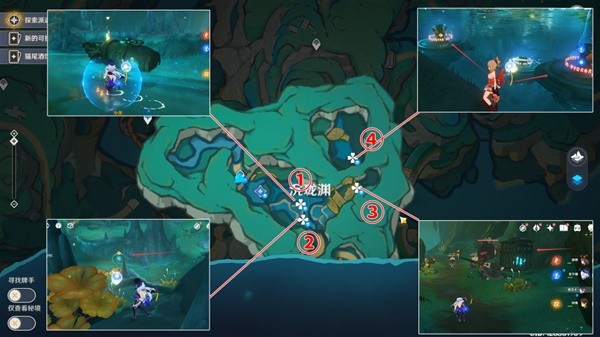 7,来到深处,与浮锦对话后,需要我们收集逸散的仙力。具体位置如图。