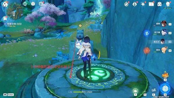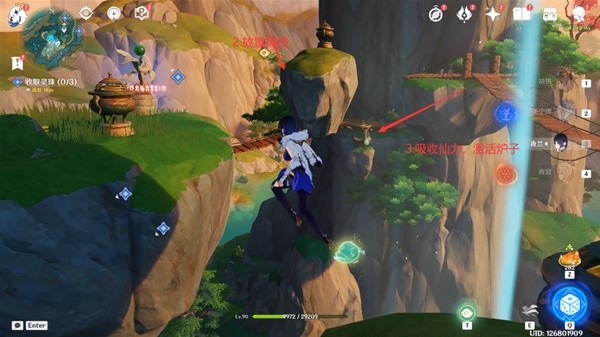 5,接着对话,对话结束后需要我们调查两处石龛。解谜原理很简单,类似与须弥的四叶印拉线。站在需要激活的炉子旁,然后对准中间发光的炉子,PC端按下“T”后,让仙力能够穿过需要激活的炉子即可,需要注意的是,尽量在短时间内激活所有炉子,否则先激活的炉子熄灭后就无法成功。