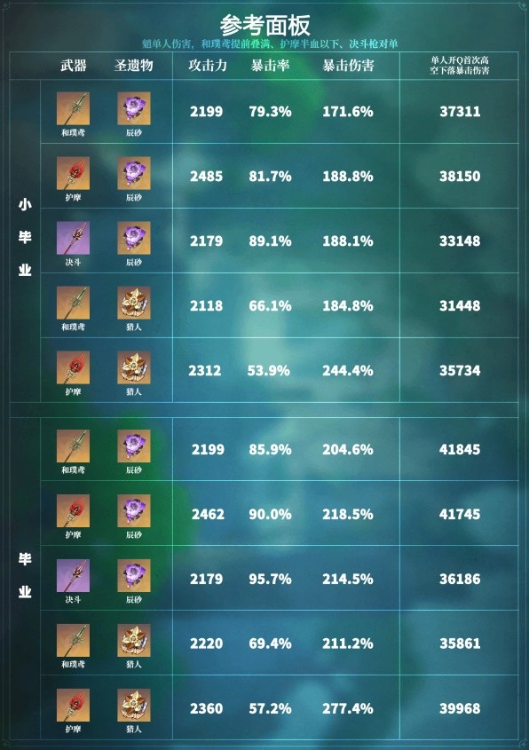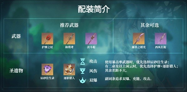 如果希望作为副C使用,武器:护摩之杖/决斗枪/薙草之稻光;圣遗物:绝缘之旗印/2磐岩2宗室2攻击搭配,主词条生命、岩伤、双爆。