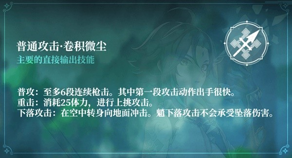 魈的普通攻击与重击共同遵循2.5s/3hits的默认附着;下落攻击的坠地冲击无附着CD、擦伤无附着。