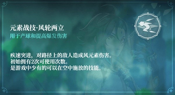 CD10s,命中时产生3颗风元素微粒,有0.5s的判定CD(靖妖傩舞状态下不产球);