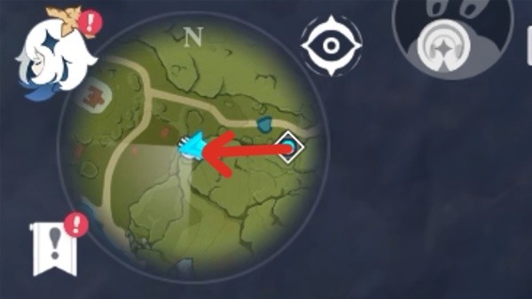 从雪山左边的秘境锚点(山脊守望,苍白/千岩圣遗物本)出来然后跟着图中箭头走