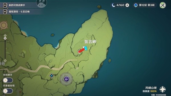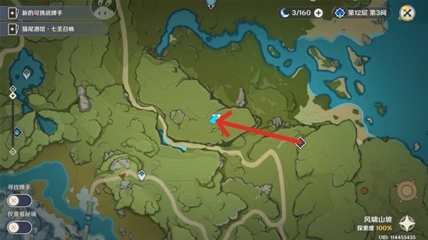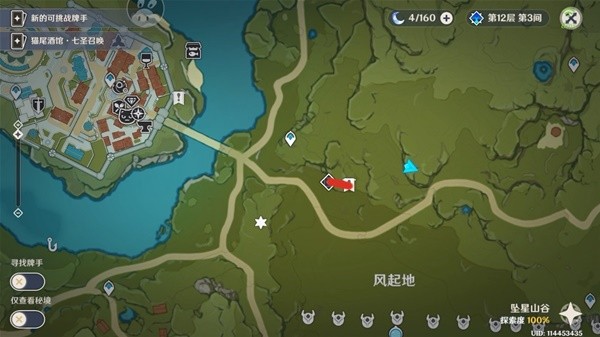 此秘境位于达达乌帕谷上方以及风起地下方,是一个元素试炼秘境传。传过去之后还是向西直走,爬山