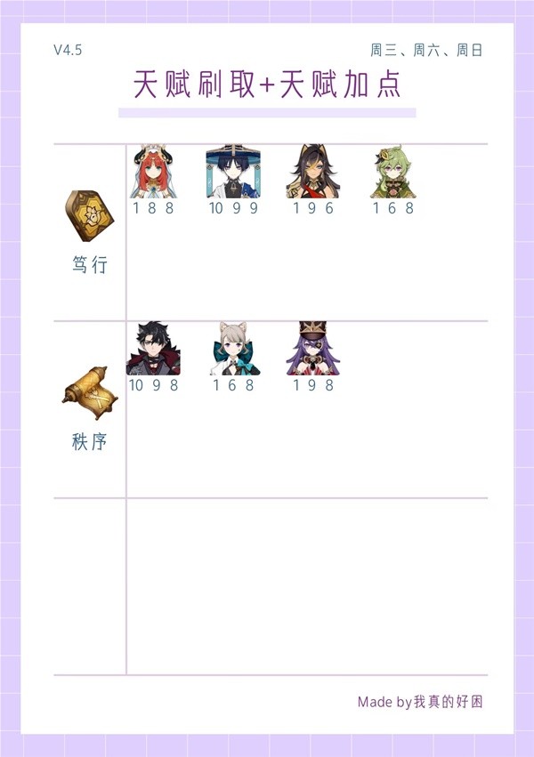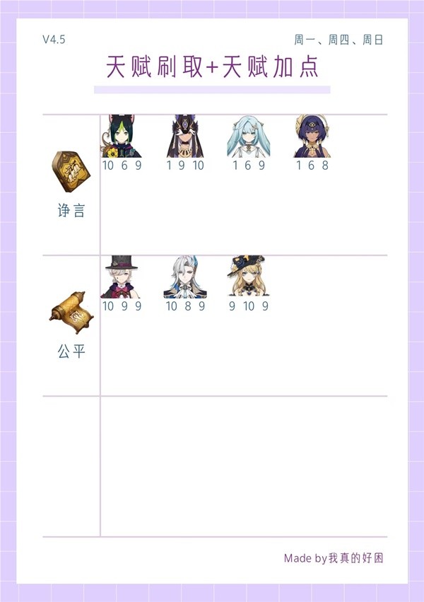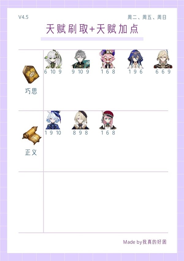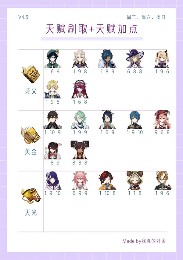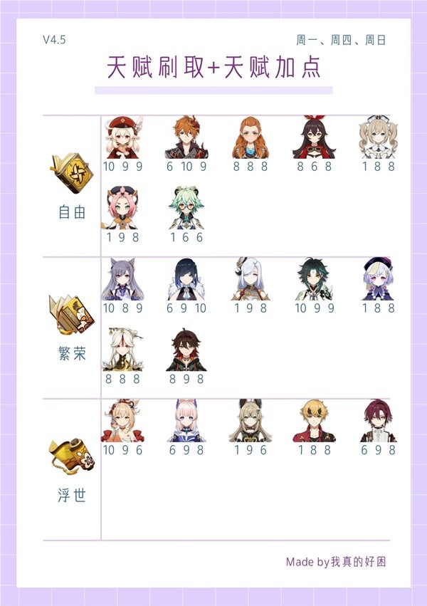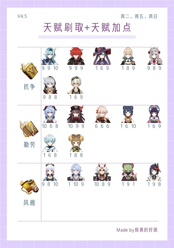 《原神》4.5全角色天赋刷取与加点一图流