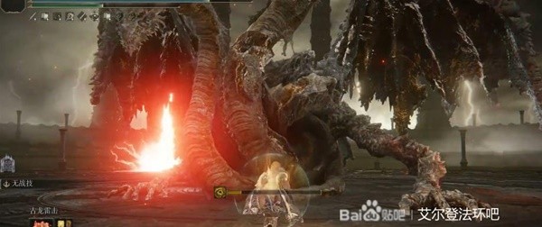 接下来会进入一段CG,等我们再次醒来的时候,就会来到龙王弗拉顿桑克斯所在的空间。一开始他不会主动攻击我们,等我们离他足够近的时候,战斗才会开始。这条龙是法环最难打的一条龙,红色落雷、喷火、激光瞬移他都会,攻击范围大,伤害高。