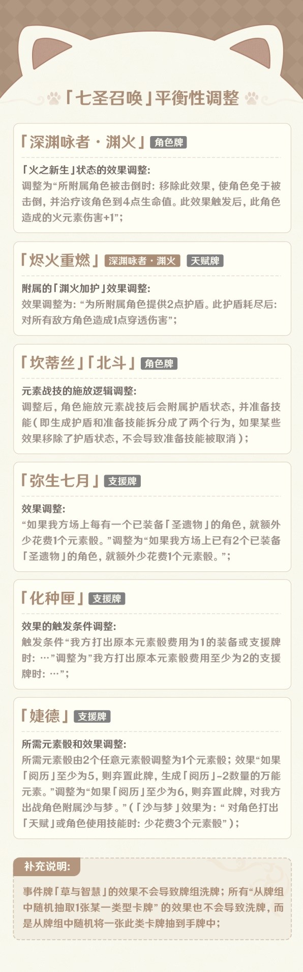 开发组将持续关注旅行者的游戏体验,并对卡牌平衡性进行优化调整。卡牌信息请旅行者以游戏内正式内容为准。