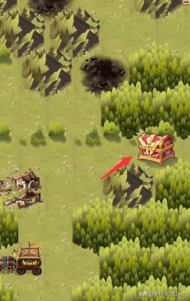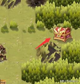 2.进图之后,直接进传送台进入左侧,点击村庄,召唤出多个据点,但是不要攻打,原路返回右侧图,到图示处领取宝箱。